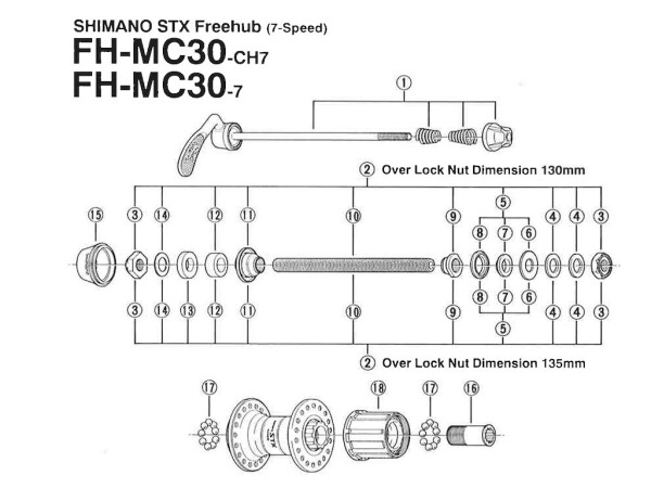 Shimano låsmutterenhet för baknav modell FH-QC500