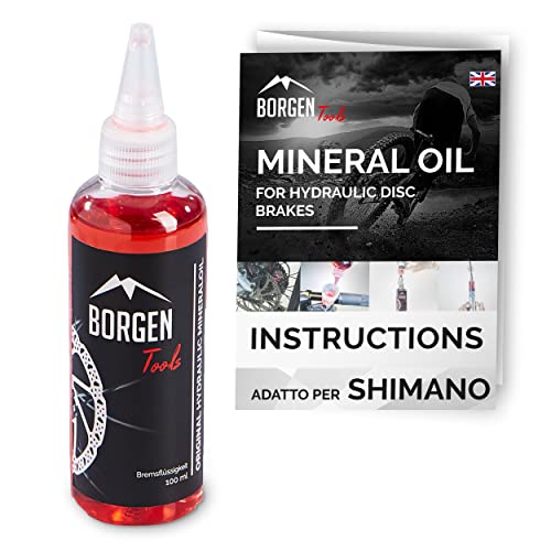 Borgen mineralolja lämplig för Shimano hydrauliska skivbromsar - 100 ml bromsvätska för flera avluftningsprocesser - kompatibel med Shimano avluftningskit för cykelbromsar - röd