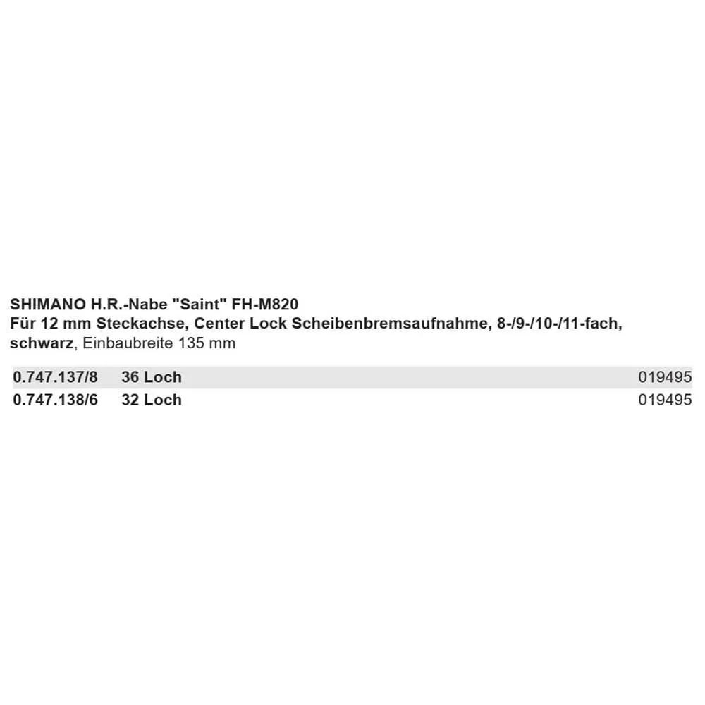 Shimano Saint Fh-m820 Cl Disc Rear Hub Guld 36H / 12 x 135 mm