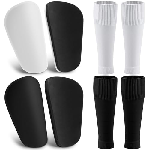 LangRay skenbensskydd fotboll med fotbollsstrumpor för barn, 2 par små benskydd barn fotboll halkfria benskydd shin pads svart för pojkar och flickor