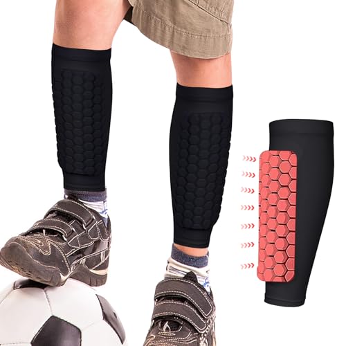 BoloShine 1 par fotbollsskenbensskydd ärmar med skumstoppning, fotboll shin Pads strumpor elastiska Shin Guard strumpor halkfria benskydd för barn vuxna (svart)