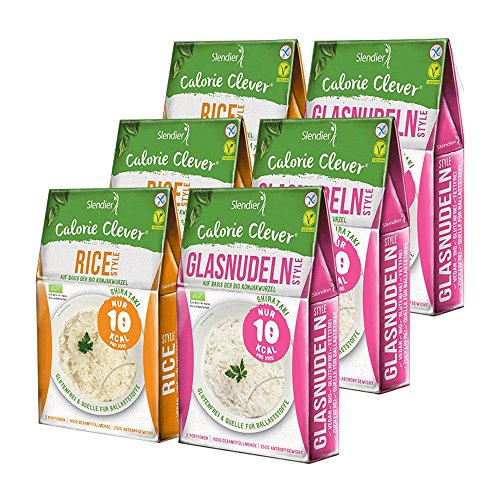 6 x Slendier Tagliatelle konjac biologiche, confezione per prove energetiche, 3 x tagliatelle di vetro 250 g + 3 x risotti 250 g, tagliatelle Shirataki, qualità biologica