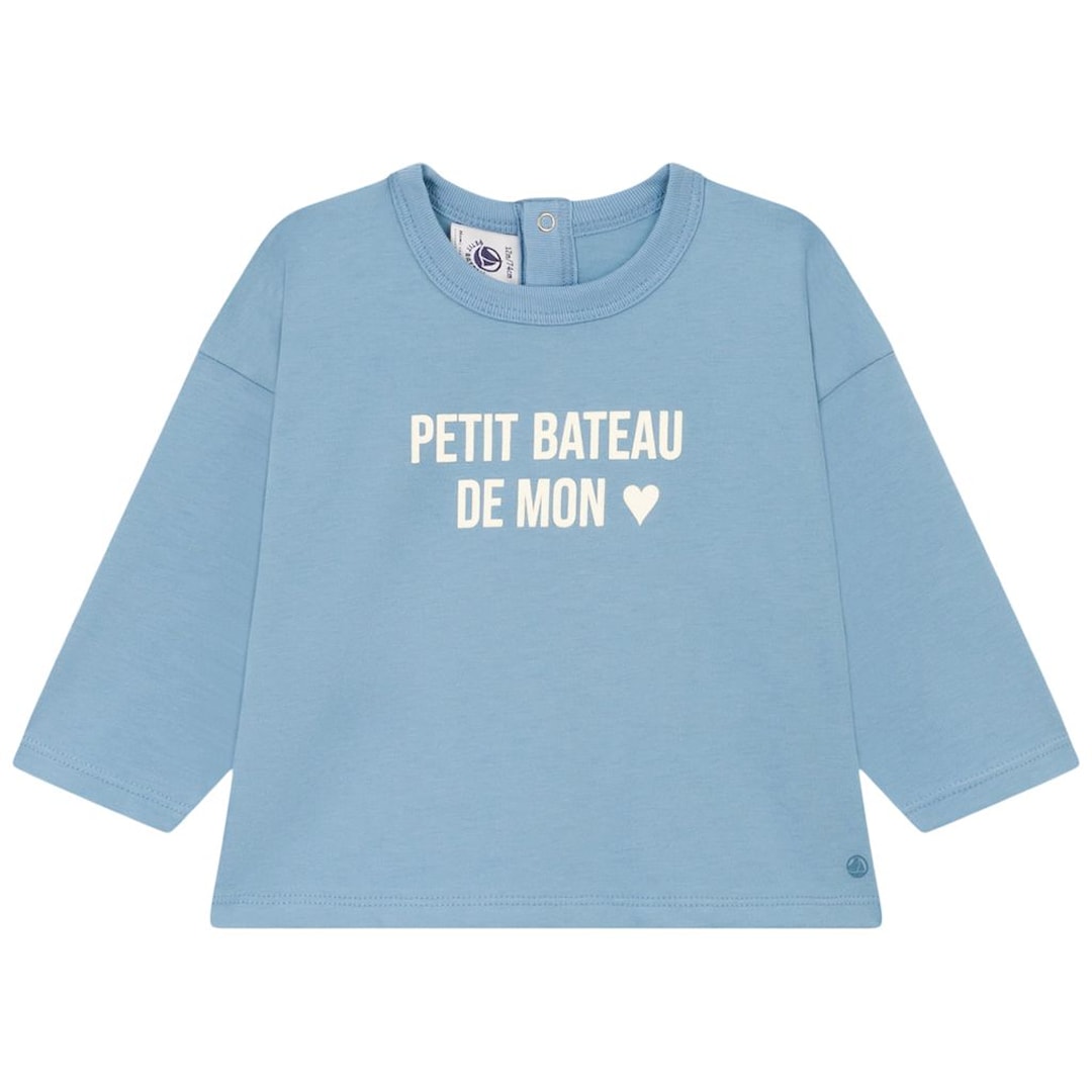 Petit Bateau Långärmad T-shirt Med Tryck Blå 12 Months Blå 12 månader man