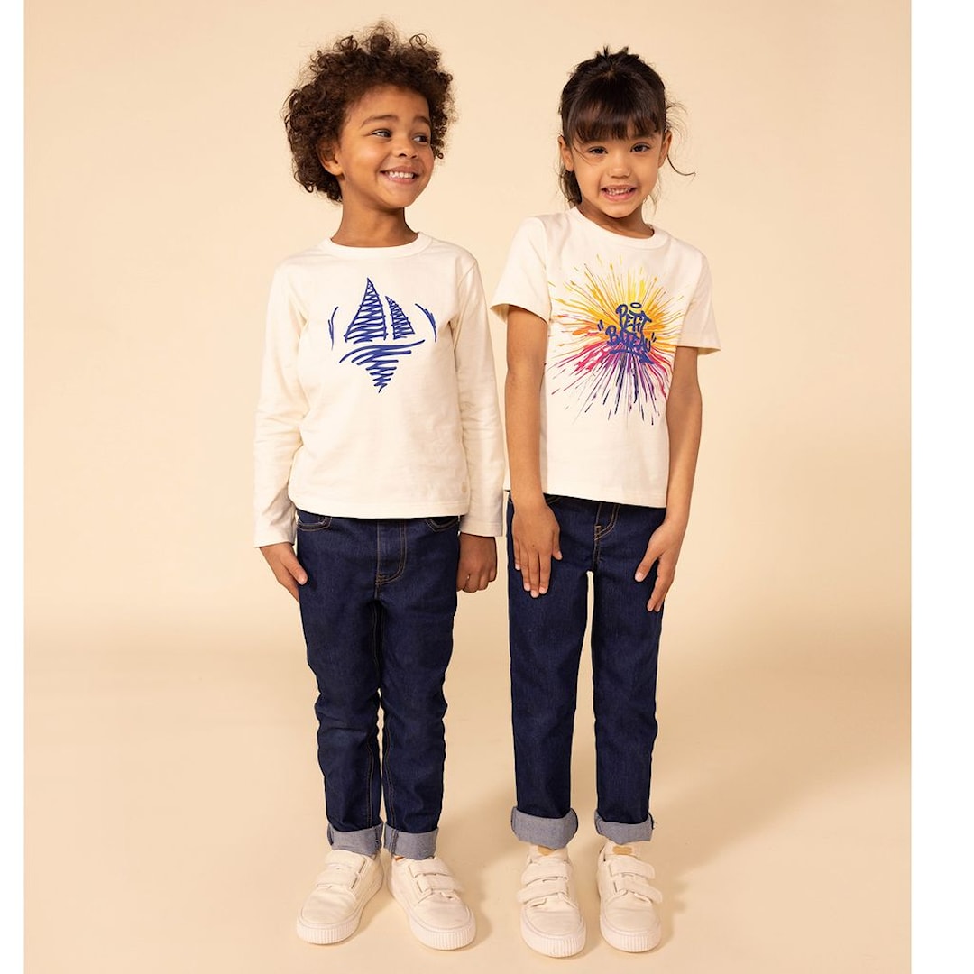 Petit Bateau Långärmad T-shirt Med Tryck Gräddvit 5 Y Krämfärgad 5 år man