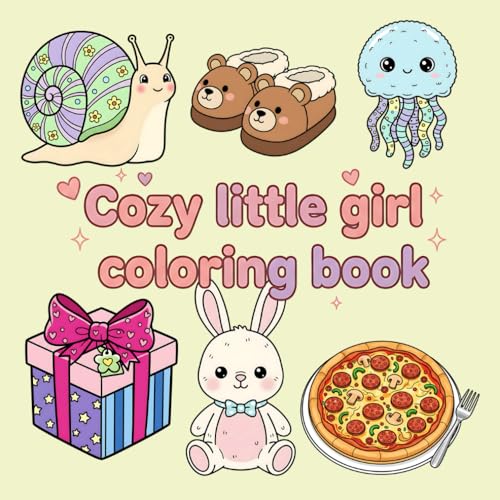 Cozy Little Girl Coloring Book: Bold And Easy 50+ Cute Illustration For Kids, Teenage & Adult | Design Like - Gift Box, Jellyfish, Coffee Cup, Bed, Cat, Pie, Soup, Shoe & More!