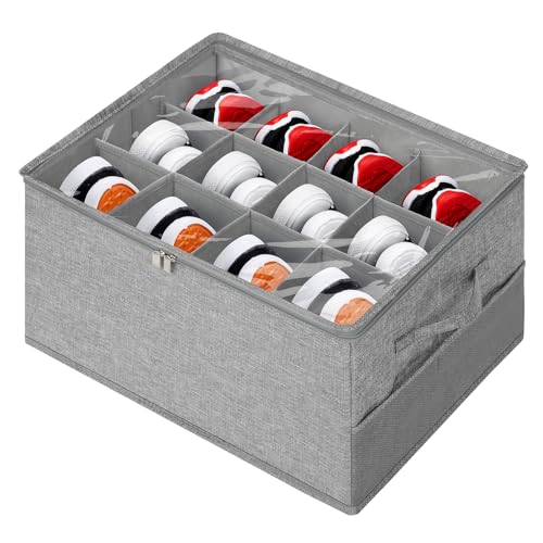 Cozary Skolådor, skoorganisatör med 12 fack med nätväska, genomskinligt lock och förstärkta handtag, lämplig för 6–12 par, hopfällbar, för garderob, skoskåp, grå (43 x 32 x 32 cm)