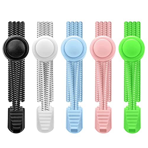 AIXMEET 5 Pairs no tie shoe laces for adults ,Shoe laces tieless, No tie laces for kids, Elastic shoe laces for adults sneakers, Colorful shoelaces (black+white+blue+pink+green)