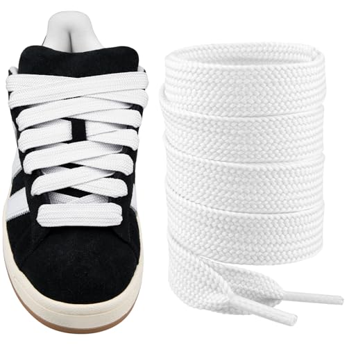 Endoto Skosnören för Campus 00s Sneakerskor, 16mm Bred Ersättning Skosnodd Snören Snörning Platt för Shoelaces Laces - Vit, 54 tum