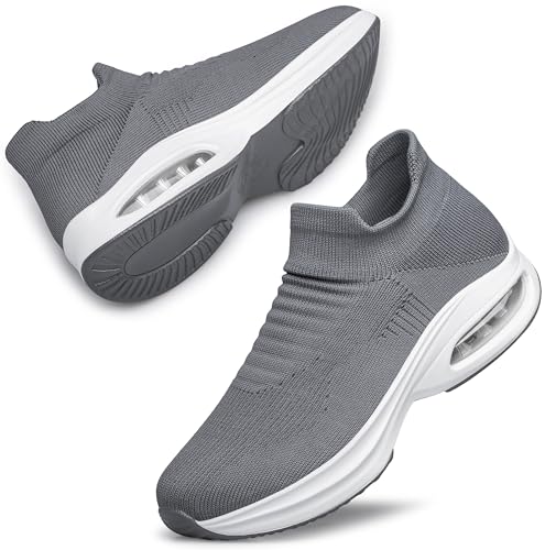 DOUSSPRT Womens Walking Shoes Sock Casual Ladies Fashion Sneakers Comfortable Slip On Air Cushion Platform Darkgrey 8