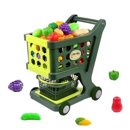 Kids Shopping Cart Play Set, Children’s Grocery Store Toy Cart, Round Wheel Design Pretend Fun Kitchen Accessory for Birthday, Christmas, New Year, Gift for Children