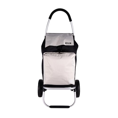 Cofan Vikbar shoppingvagn med 2 hjul | material: aluminium | 43 liters påse | fryst ficka | svart och beige/svart och rödbrun (svart och beige, 43 liter)