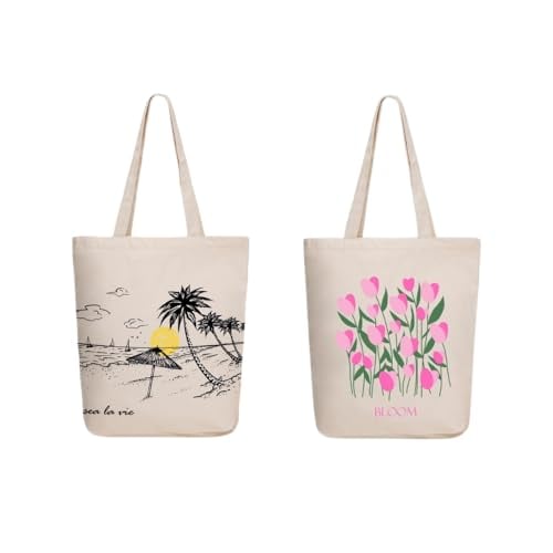 Ecoright Shoppingväska, bomullstyg Bag, tryckt med dragkedja, robust bärväska med handtag, tygväska för kvinnor, användning, Sea La Vie Beach-blomma, En Storlek, Utility