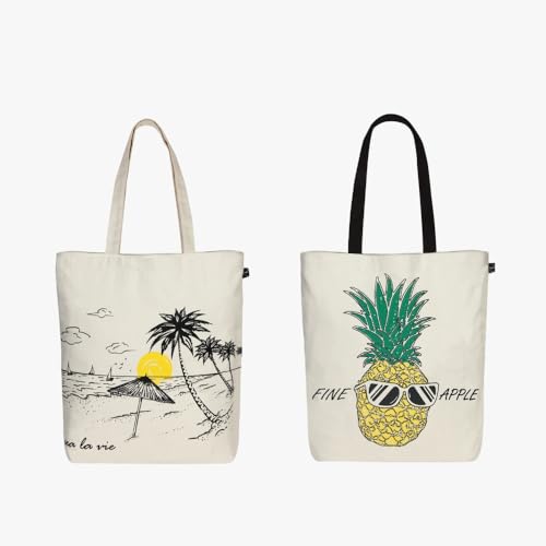 Ecoright Shoppingväska, bomullstyg Bag, tryckt med dragkedja, robust bärväska med handtag, tygväska för kvinnor, användning, Sea La Vie Fine Apple, En Storlek, Utility