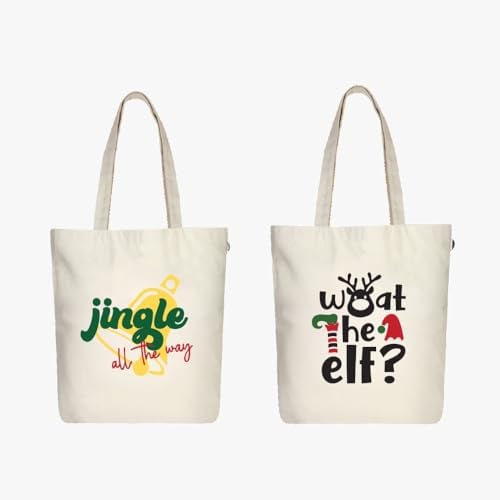 Ecoright Shoppingväska, bomullstyg Bag, tryckt med dragkedja, robust bärväska med handtag, tygväska för kvinnor, användning, Elfish & Jingle Days, En Storlek, Utility