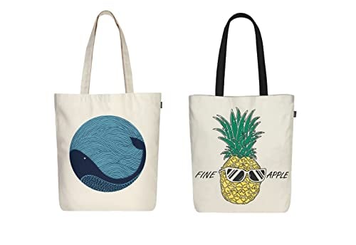 Ecoright Shoppingväska, bomullstyg Bag, tryckt med dragkedja, robust bärväska med handtag, tygväska för kvinnor, användning, Ananas och val klotter, En Storlek, Utility