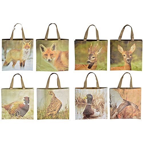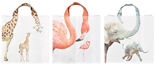 Esschert Design Vilda djur sorterad shoppingväska, PP-tyg, flerfärgad, 39,5 x 14,5 x 40 cm