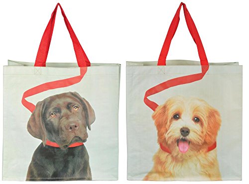 Esschert design hund på koppel sort. Shoppingväska, PP-tyg, flerfärgad, 39 x 14 x 39 cm