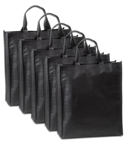 IPEA Shopping- och shoppingväska i TNT – 5 delar – mått 42 x 37 cm – återanvändbar väska i non-woven tyg för shopping och fritid – röda TNT-väskor – svart, svart, 42 x 37 cm, Minimal