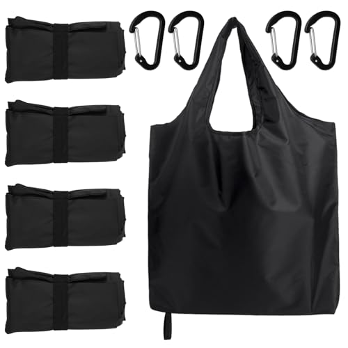 4 stycken faltbar med karabiner, 56 x 43 cm Oxford-tyg miljövänlig shoppingväska, lätt vikt fickväska, vikbar shoppingväska stor för daglig användning ta ut förvaring