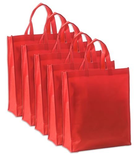 IPEA Shopping- och shoppingväska i TNT – 5 delar – mått 42 x 37 cm – återanvändbar väska i non-woven tyg för shopping och fritid – röda TNT-väskor – röd, Röd röd, 42 x 37 cm, Minimal