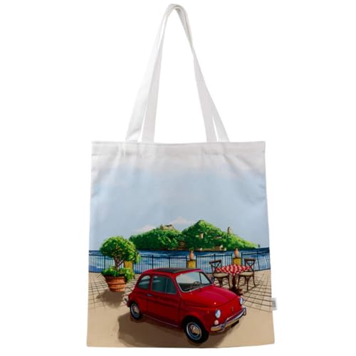 Puckator Fiat 500 Riviera återanvändbar shoppingväska – tygväska – tygväska – tygväskor – miljövänliga gåvor för män och kvinnor – shoppingväska av tyg – vikbar väska för, mångfärgad, Retro