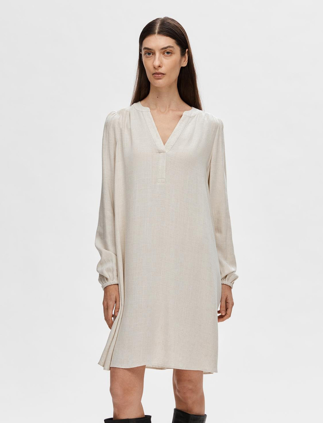 Selected Slfviva Ls Short V-Neck Dress Noos - Cream - 34