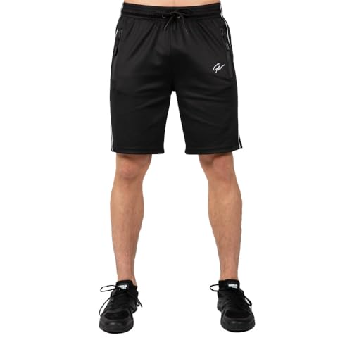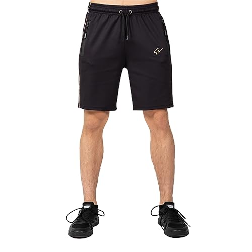 Gorilla Wear vändbara spårshorts – svart/guld – lätta bekväma shorts för sport vardag fritid träning av polyester elastan rörelsefrihet tajt passform dragkedja