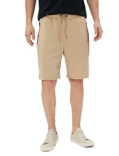 KOTON Bermuda shorts för män slogan tryckt dragsko dragkedja ficka detaljerad smal passform shorts, Beige (050), S