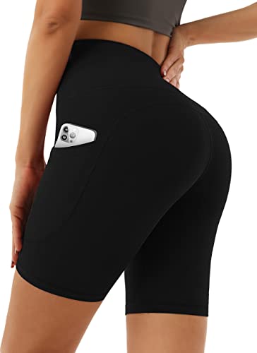 SINOPHANT cykelshorts med hög midja för kvinnor – magkontroll fjärils mjuk cyklist yoga löpning gym svart träning atletiska shorts Svart/Svart/Svart L-XL
