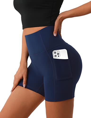 LOS OJOS basics cykelbyxor dam – kvinnor hög midja biker shorts yoga träning löpning kompression träning shorts, True marinblå, XL