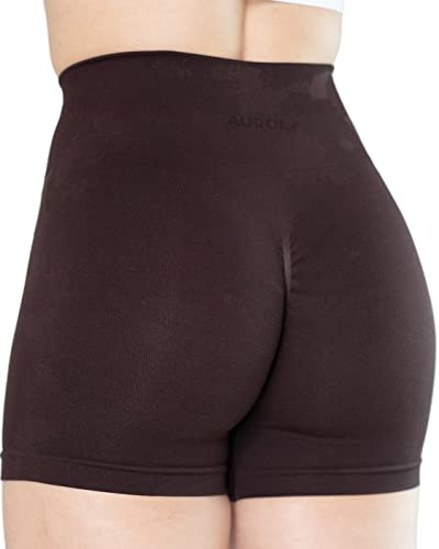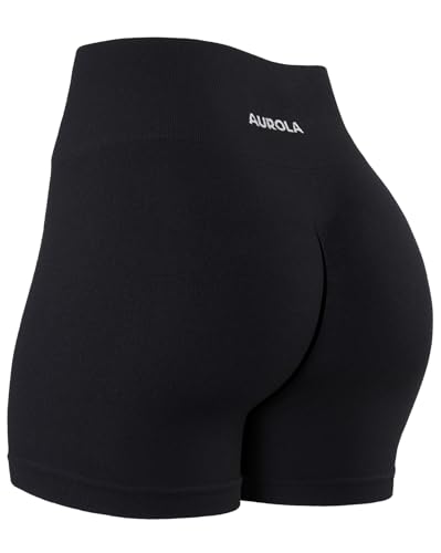 AUROLA Intensify shorts dam atletisk sömlös hög midja löpning gym fitness yoga träning kort, Svart, S