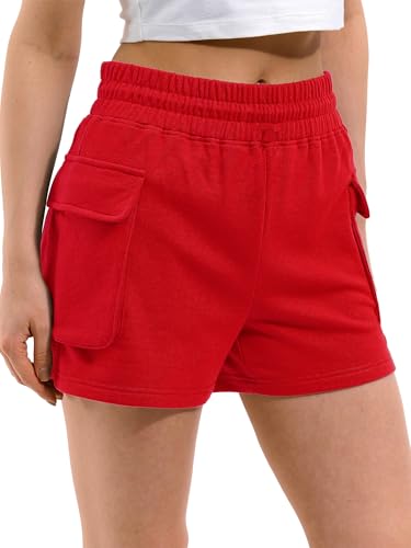 Hanyomo Dam Träning Fitness Vardagsrum Bekväm Svett Atletisk Löpning Dragsko Terry Bomull Shorts, Röd, L