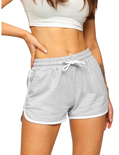 Hanyomo Dam atletisk yoga fitness frotté bomullsshorts gym löpning bodybuilding shorts med medeltjocklek, Grå, S