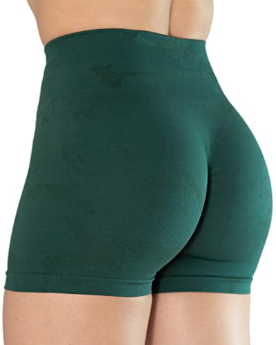 AUROLA CAMO Collection sportshorts kvinnor sommar gym fitness träning shorts för kvinnor sömlös scrunch butt gym yoga löpning aktiva shorts, Camo-Bean Green, XS