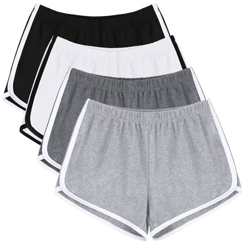 URATOT 4-pack yoga korta byxor bomull sportshorts gym dans träningsshorts delfin löpning atletiska shorts för kvinnor, Svart, ljusgrå, mörkgrå, beige, S