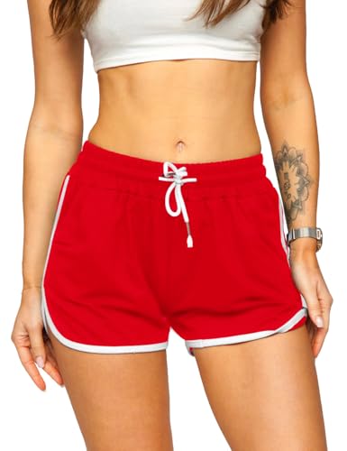 Hanyomo Dam atletisk yoga fitness frotté bomullsshorts gym löpning bodybuilding shorts med medeltjocklek, Röd, L