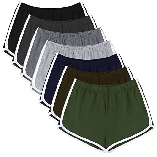 URATOT 7-pack sportshorts i bomull sommar yoga dansbyxor andningsbara träning löpning shorts delfinshorts för kvinnor, Mörkoliv, dimgrå, mörkkaki, marinblå, blandade färger, M