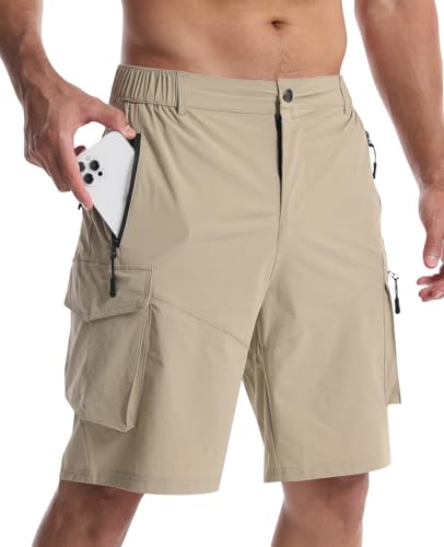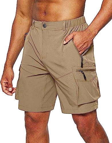 Danfiki Shorts Arbete Herrshorts Bermuda Cargo Korttorkande Snabbtorkande Sommar Sport Vandring Med Dragkedja Fickor, Khaki, XXL