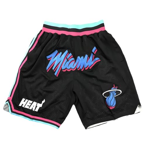 Mengmiao Miami Heat Basketshorts för män - Sportiga, andningsbara och snabbtorkande NBA-shorts med dragkedja, lös passform shorts för träning och utomhus, Svart #1, M