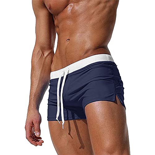 Herrbadbyxor snabbtorkande badshorts justerbar dragsko boxershorts badkläder bräda shorts med dragkedja bak, marinblå, XL
