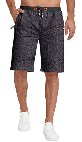 KUYIGO herrshorts sommar, casual dragsko, ljus sport shorts dragkedja, fickor, stretch bomullsshorts,Storlek S-3XL, Mörkgrå, XXL
