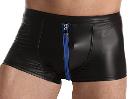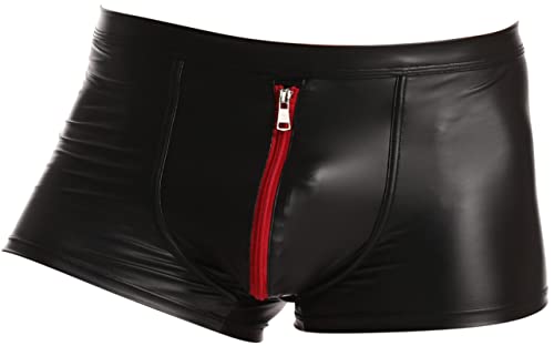 ohyeahlady Boxershorts för män, sexigt, konstläder med dragkedja, wetlook, män, gay-underkläder, stora storlekar, sexiga underkläder, hål, elasticitet, kalsonger, shorts, boxerkalsonger, svart, L plus