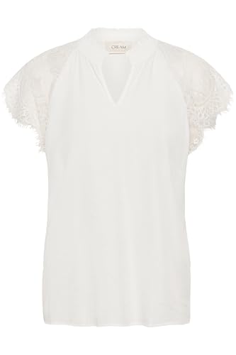 Cream Damblus shorts spets ärmar V-hals mandarin krage normal passform, Snövit, 44