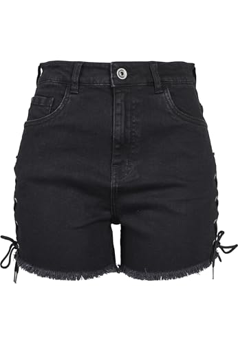 Urban Classics Dam, hög midja, denim, spets, up-shorts, Svart grå, 30