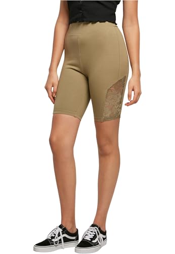 Urban Classics Dam dam hög midja spets Inset cykel yoga shorts, kaki, M