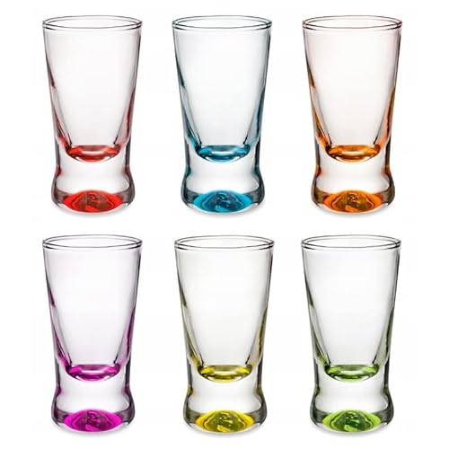 KADAX Snapsglas, set om 6, 28 ml, skottglas, stämpel för alkohol, brand, shot, vodka, fest, snapsglas, korta glas, sambucaglas, anslagsglas, shotmuggar (flerfärgade)