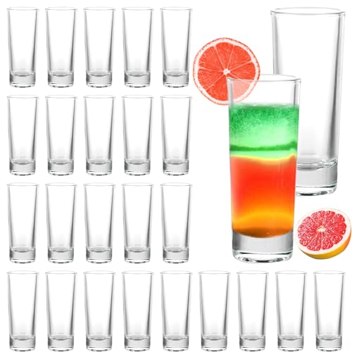 SuproBarware Shotglasset - 60 ml Höga Shotglas, Set Med 24 Genomskinliga Spritglas, Tung Bas, Rund Rock Shot-Glas, Storpack Återanvändbara för Vodka, Cocktaillikörer, Tequila, Party