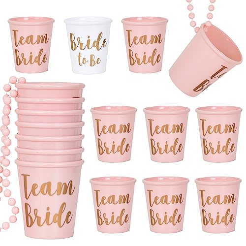 14 Pcs Team Bride and Bride Plastic Beaded Bridal Shot Glass Necklace Pink and White, Bachelor Party Chain Wine Cup Necklace Groom and Bride Shot Glasses for Wedding Party Hen Party