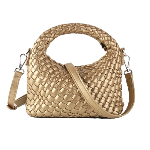 Woven Purse For Women, Small Crossbody Tote Bag with Detachable Shoulder Strap, Girls Top Handle Handbag (Gold)