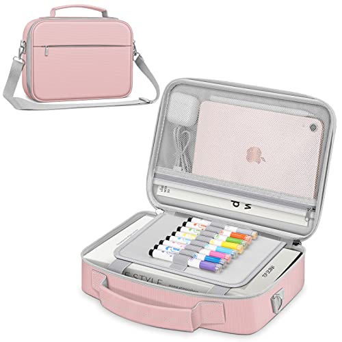 FINPAC Large Bible Cover w/Shoulder Strap, Carrying Book Case Church Bag Bible Protective w/Pen Slots and Zippered Pocket, Gift for Women Lady, Light Pink